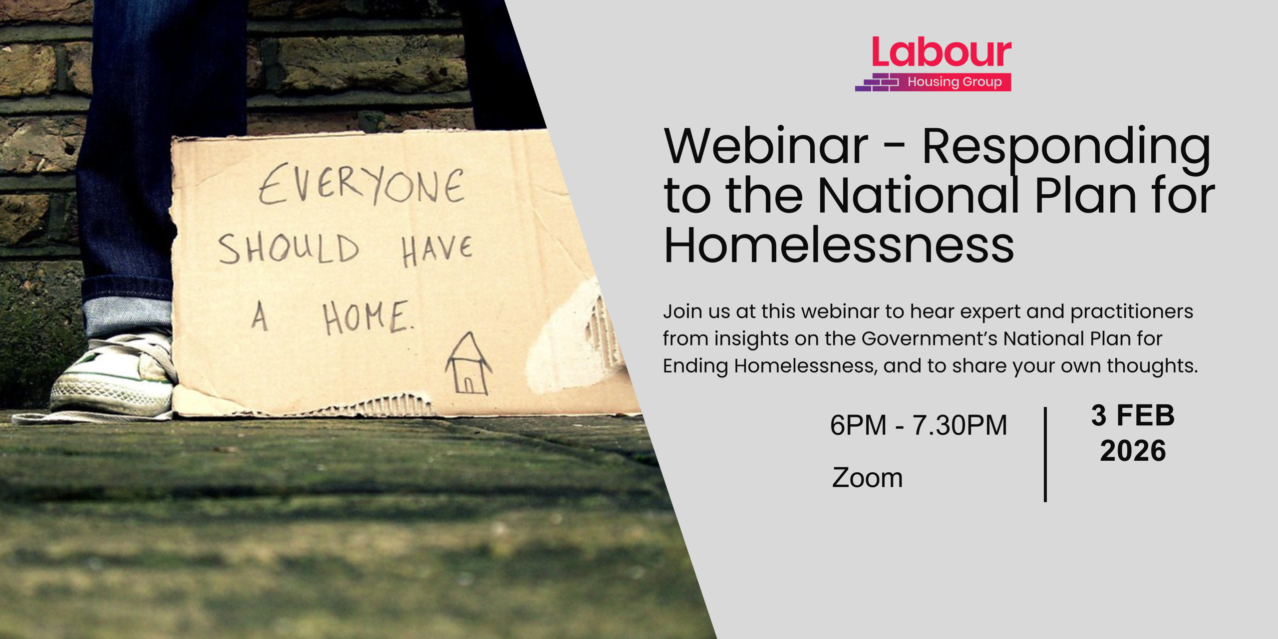 On Tuesday 3 February, Labour Housing Group’s Homelessness Working Group hosted an online webinar exploring the Government’s National Plan for Ending Homelessness. The National Plan sets